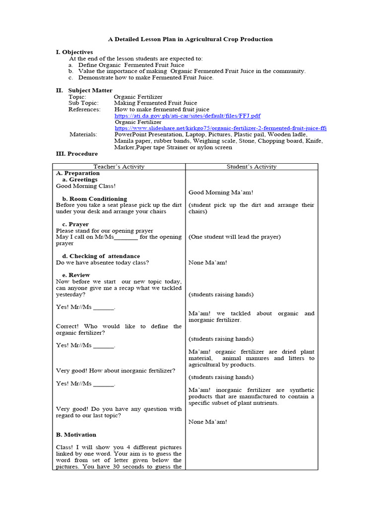 Detailed Lesson Plan in TLE PDF Personal Protective Equipment Juice